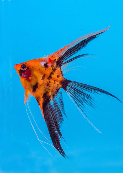 Our rare and exclusive Åpex select grade Koi HR (high coverage) are a special orange Angelfish originated from a cross between a German and American bloodline which began development since the 1980s. The color is highly reactive to their diet and environment where the vibrancy can fade under stress and during transport, please refer to our Åpex instruction care sheet for tips on caring for this strain which is hardy and grows highly colorful in an ideal environment with the correct diet.