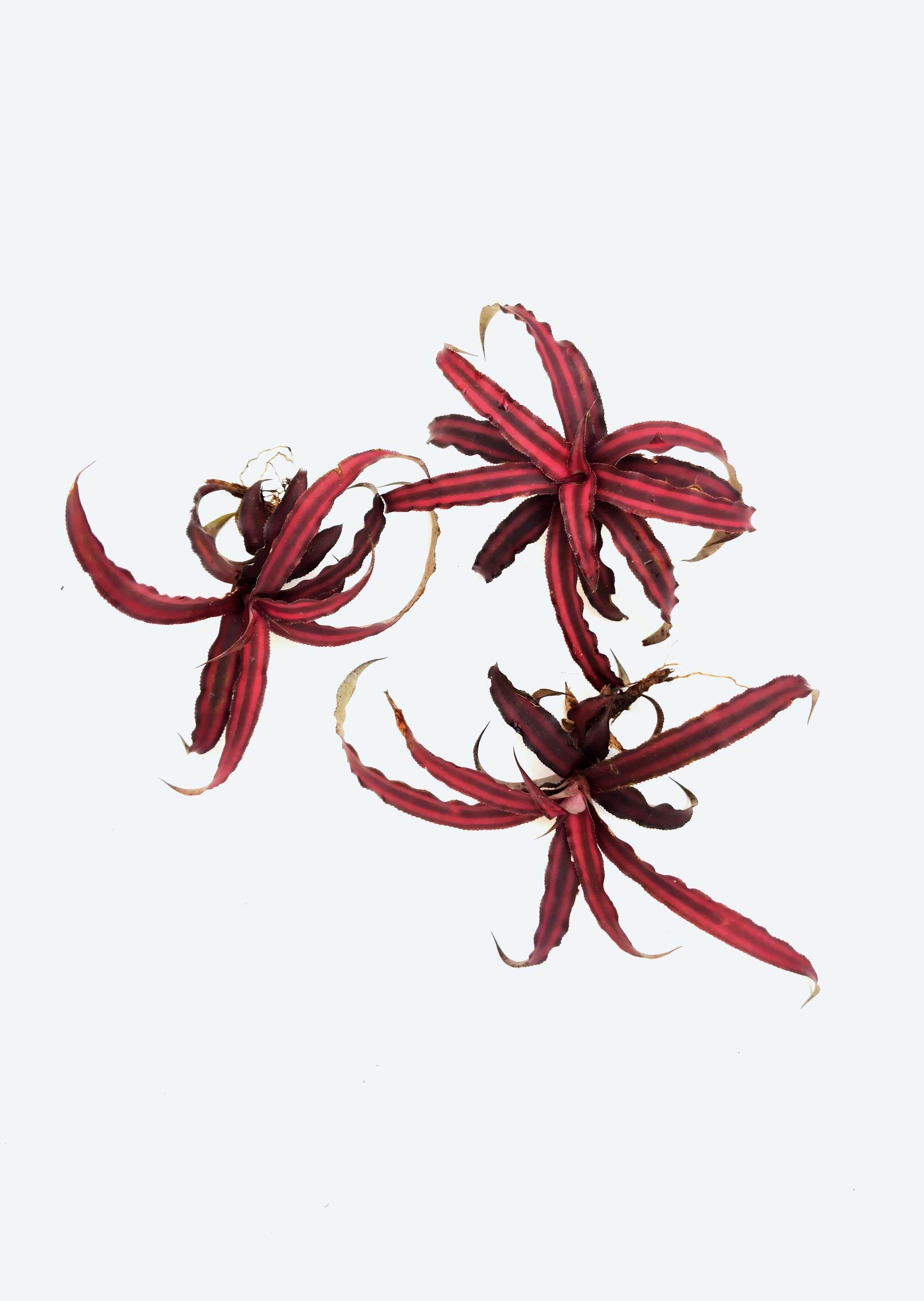 Bromeliads naturally vary in color, pattern, and form. Color intensity depends on light, humidity, nutrition, and maturity. No two plants are identical, especially cultivated varieties. Minor cosmetic stress (leaf marks, color dulling, or slight deformation) may occur during transport and is normal.