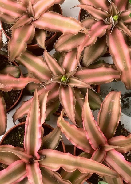 Bromeliads naturally vary in color, pattern, and form. Color intensity depends on light, humidity, nutrition, and maturity. No two plants are identical, especially cultivated varieties. Minor cosmetic stress (leaf marks, color dulling, or slight deformation) may occur during transport and is normal.