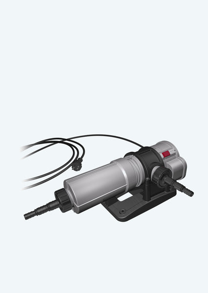 - Package contents: complete UV-C device, 5 m cable, UV-C bulb, socket: 2G11, wall mount, V2A screws, nozzle hose connections for 12 - 40 mm hoses.