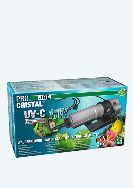 Updated compact UV-C water clarifier from JBL fights against water cloudiness, free floating algae, and pathogens in the water column for higher quality water environment which reduces chances of infections.