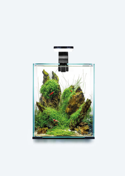 The Shrimp Set Day & Night set includes: aquarium (available in 3 capacities: 3, 5 and 8 US gal [10, 19 and 30 liters] ), Leddy Smart Day & Night light, filtr Turbo Mini and Fix 2 heater.