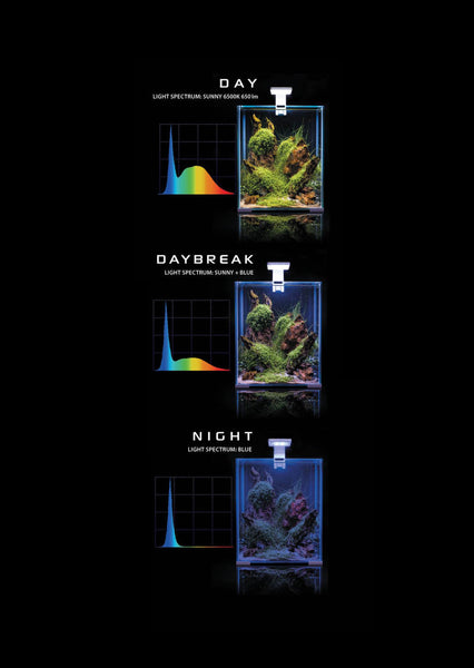 Leddy Smart Day & Night Light offers a choice of three lighting modes that provide optimal lighting for the aquarium at different times of the day. Daytime lighting consists of two modes: Day and Daybreak, which provide different light intensity. Night mode is a night light that allows oli to observe the life of the aquarium after dark. Thanks to it, fluorescent fish and decorations glow in the dark, and the aquarium resembles an effective bedside lamp. It is also worth paying attention to the minimalist design of the lamp, perfectly matching the whole set. LED lamps (4.8 W) are also very energy-efficient, which translates into lower electricity bills.
