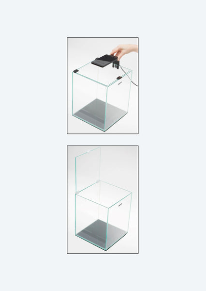 System Smart Open: The glass cover of the set not only has a striking finish, but also has practical applications. It limits the evaporation of water from the aquarium, keeps dust away from its surface and protects against uncontrolled escapes of animals from the tank. The Smart Open system allows you to conveniently keep the lid open when working in an aquarium.
