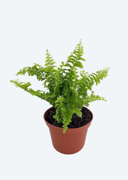 Add timeless charm to your terrarium with our small Boston Fern (Nephrolepis exaltata 'Bostoniensis', also known as Fluffy Raffle Fern). This young plant of the beloved houseplant features graceful, arching fronds with finely cut leaflets that bring texture and volume to any small-scale setup.