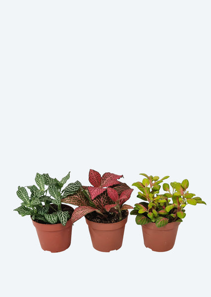 Add a burst of color and texture to your terrarium or indoor garden with our small Fittonia pots! Commonly known as Nerve Plant, Fittonia features striking veined leaves in shades of green, pink, white, or red. Each order includes one randomly selected Fittonia variety, carefully potted and ready to thrive in your setup.