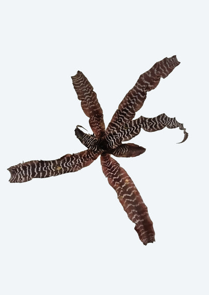 Cryptanthus naturally vary in banding intensity, color depth, and leaf shape. Contrast between dark base tones and lighter striping depends on light, humidity, nutrition, and maturity. No two plants are identical. Minor cosmetic stress (leaf marks, slight color fading, or edge deformation) may occur during transport and is normal.