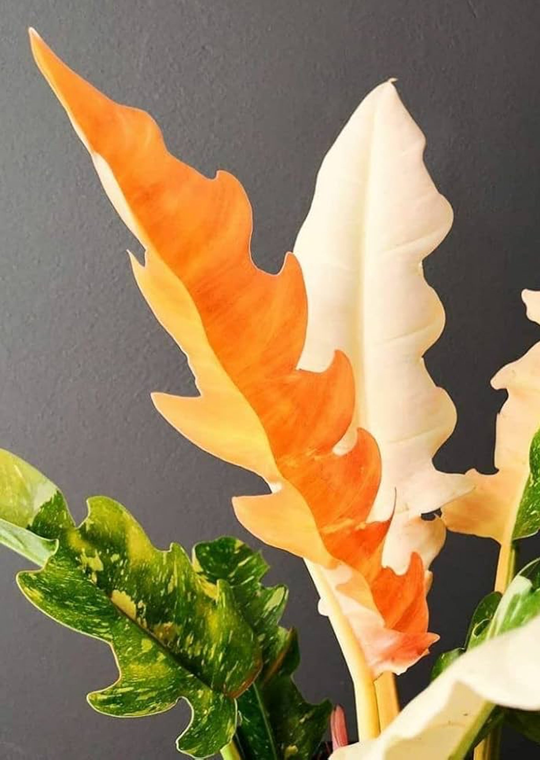 Add dramatic foliage interest to your terrarium or indoor collection with our Philodendron Ring of Fire (also known as Philodendron Ring of Fire Variegata), a rare variegated Philodendron hybrid valued for its deeply serrated leaves and naturally variable coloration ranging from green and cream to yellow, orange, and red tones.