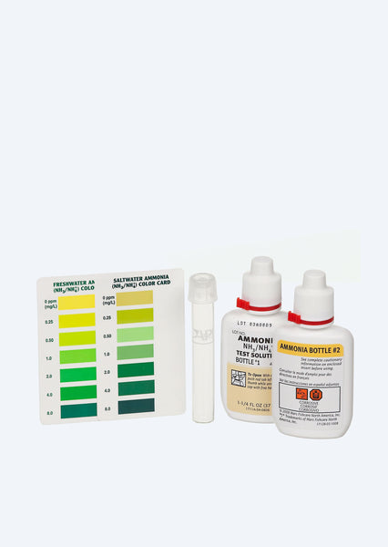 The API AMMONIA TEST KIT is a mercury-free, salicylate test for fresh and saltwater fish, and measures ammonia levels from 0 to 8 ppm.