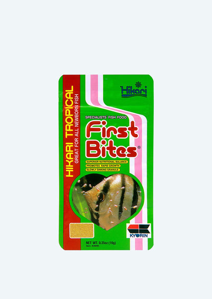 - For mid-water and bottom feeders: Soak Hikari First Bites in a cup of aquarium water before feeding. This will cause the food to sink more rapidly providing fry ready access to the nutrition.