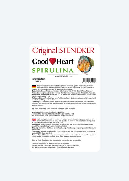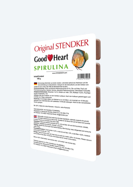 Stendker Good Heart Spirulina-Alge is a compound feed based on beef-heart mixed with a wide range of rich nutritional content making it a complete diet for both juveniles and adults. Suitable for all kinds of Discus and equally enjoyed by many ornamental fish.