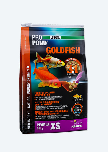 - Food size XS (1.5-2mm) for fish from 5-15 cm. Also for veiltails and other goldfish breeds