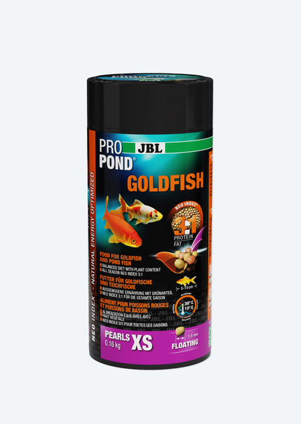 - Floating food pearls with 20 % protein, 6 % fat, 3 % crude fibre and 9 % crude ash