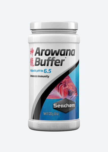 Arowana Buffer adjusts pH to 6.5 from either a low or high pH and maintains it there for 2–4 weeks. It safely softens water by precipitating calcium and magnesium. It also supports the ability of arowanas to resist infections. It is the buffer of choice for conditioning water for Asian Arowanas.