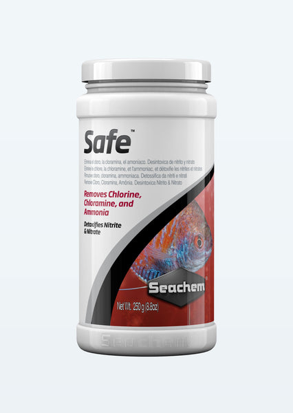 Seachem Safe removes chlorine, chloramine and ammonia. It converts ammonia into a safe, non-toxic form that is readily removed by the tank’s biofilter. It may be used during tank cycling to alleviate ammonia/nitrite toxicity. It detoxifies nitrite and nitrate, allowing the biofilter to more efficiently remove them. It is non-acidic and will not impact pH. It will not overactivate skimmers.