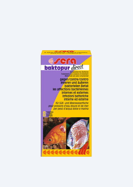 sera Baktopur (Bactopur) Direct tablets. Water conditioner effective against bacterial infections of freshwater and marine fish – even in advanced stages.