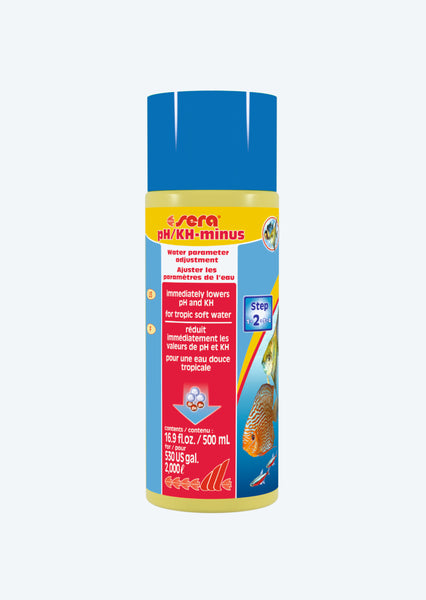 In these cases, sera pH/KH-minus provides reliable and quick support. The pH value and the KH are immediately and precisely lowered and regulated. This creates appropriate keeping conditions that considerably contribute to the vitality and the fish doing well.