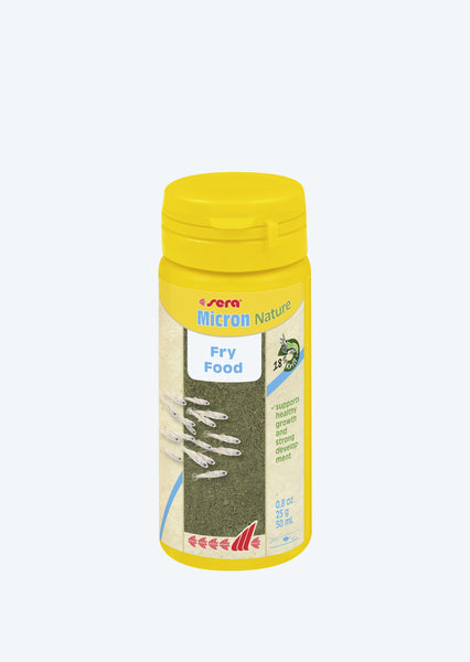 sera Micron Nature is the fry food without dyes and preservatives for the healthy nutrition of fish and amphibian fry as well as Artemia nauplii in fresh and marine water.
