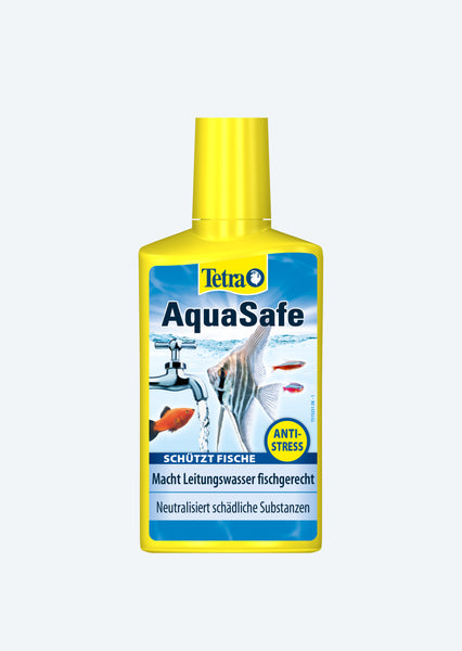 Tetra Aqua Safe. Protects fish and plants reliably against harmful substances in tap water and adds important vital components. For nature-like aquarium water. The optimised formula ideally matches the care needs for skin and fins of your fish.