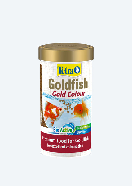 Goldfish Food Gold Colour is a premium colour-enhancing fish food for special goldfish. Tetra gold fish food contains all the essential nutrients your Goldfish require for a complete, balanced diet. This colour enhancing fish food has low waste for clearer, healthier water.