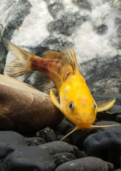 Also known as the Golden Synodontis, Gold Nigrita Catfish, Nigrita Synodontis, or the False Upside-Down Catfish, this rare golden morph of the West African Synodontis nigrita stands out with its shimmering golden body and active nature. Like other Synodontis, it is a hardy bottom-dweller that occasionally swims at angles or upside-down, a behavior that makes it especially entertaining to watch. Our stock is sold are often available in small or medium sized fish, allowing aquarists to raise them and enjoy their coloration deepen with age. Best kept in medium to large aquariums with equally robust tankmates.