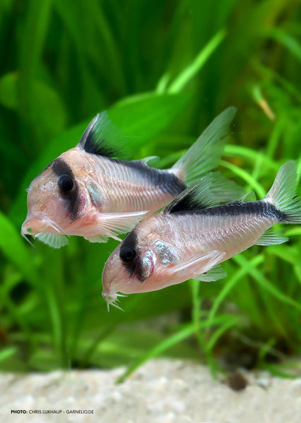 The Bandit Corydoras, or Corydoras Metae, is an uncommon variety with an attractive black line that extends on its back giving it a unique appearance which looks especially fascinating when these little cories swim together as a group. The Bandit Corydoras shares the same diet requirements as other cories and must be supplemented with a proper meal.