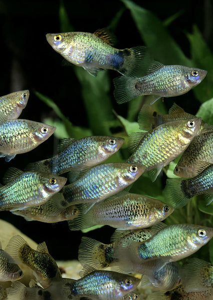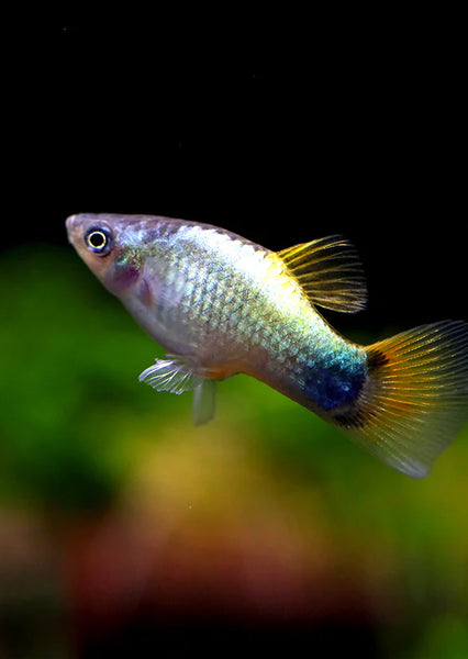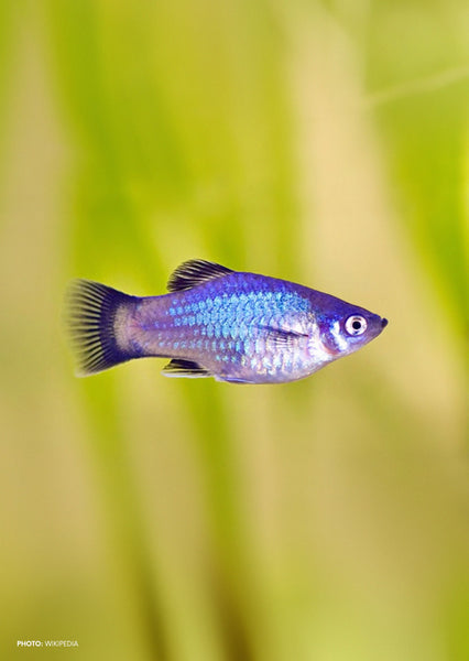 Some Blue Platies may have shades of yellow gradient near their fins or "Mickey Mouse" markings on their tails which adds a unique feature to this variety.
