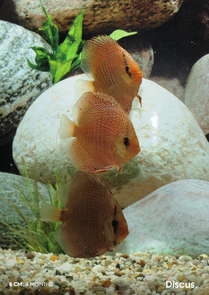 All our discus fish are measured in centimeters (not inches) with a variation tolerance of half a centimeter in length (-/+ 0.5 cm). Be sure to check our measuring image and use the conversion table below for your reference.