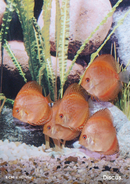 ► Note: If you select our small 5 cm Discus fish (2 months old), it must be understood that these fish are younger and fragile, order them with caution. For better immunity we recommend fish in 8 cm or larger.