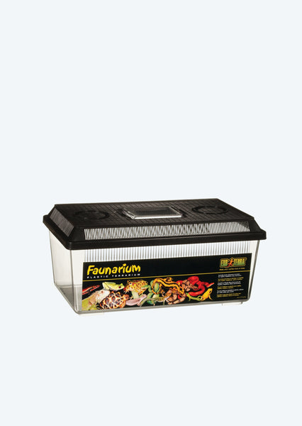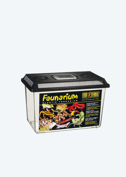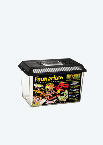 The Exo Terra Faunarium is an easy to use stackable plastic all-purpose terrarium for reptiles, amphibians, mice and arachnids and insects.