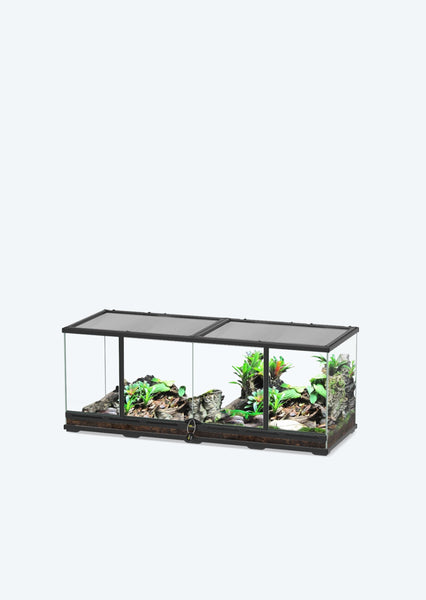 Glass terrariums with aluminum structure to accommodate your reptiles and amphibians in high quality habitats, respecting the specific conditions of safety.