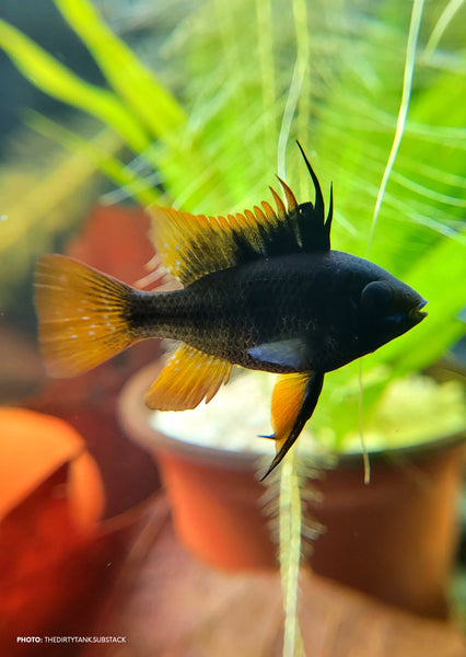 Note: Pictures on this page are examples of the adult Dark Night Ram. It must be expected that juvenile Dark Knight Rams will not have their colors fully developed yet and genders of young fish are not possible to identify.