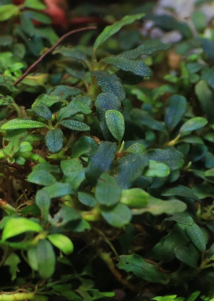 Bucephalandra ‘Kedagang Mini Round’ is a rare, potted variant of the Bucephalandra genus, appreciated for its compact size and shorter, deep-green leaves with a subtle metallic sheen. This rooted form establishes quickly compared to tissue-cultured portions, making it ideal for precise aquascaping and long-term growth. Naturally occurring in fast-flowing Bornean streams, it thrives when attached to rock or driftwood and adapts well to both submerged and emersed setups. Slow-growing and highly resilient, it performs best under medium light and stable conditions, adding texture, depth, and a natural, mature look to any aquascape.