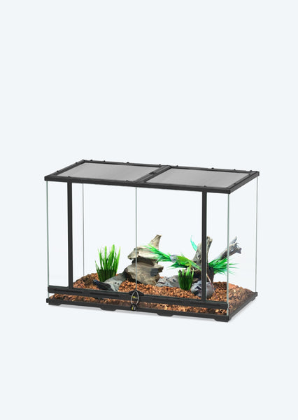 Glass terrariums with aluminum structure to accommodate your reptiles and amphibians in high quality habitats, respecting the specific conditions of safety.