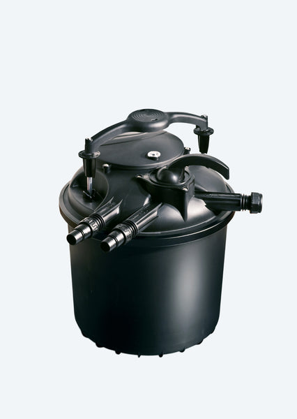 The innovative Green Reset range of pressurised pond filters offer the ultimate in combined filtration systems. All models include as standard high power UVC lights, patented backflush system, filter media and hose fittings. The range is made by four different models and can perform several tasks at the same time.