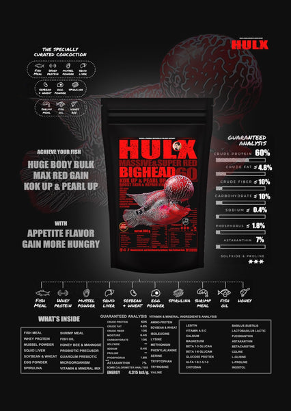 HULX Big Massive Super Red Bighead is a specialized Flowerhorn floating food. Specially formulated to meet the unique nutritional and conditioning needs of your Flower Horn fish and other cichlid species with similar requirements.