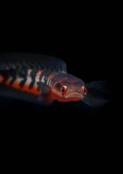 A powerful predatory species native to Southeast Asia, this snakehead is ideal for experienced keepers with large tanks and secure lids.