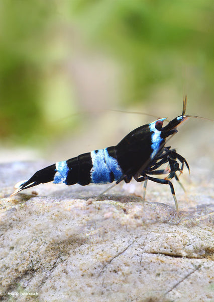 Black panda shrimp with blue hue that gets deeper as the shrimp matures - a selective breed from black panda and blue bolt shrimp which can be kept with other types of Taiwan Bee without worrying about hybridizing. Dwarf ornamental shrimps are tiny in size (2 to 3 cm) and they have become the ideal resident in nano aquariums and aquascapes due to their grazing of organic matters and algae consumption while adding a colorful touch and life to any scape.